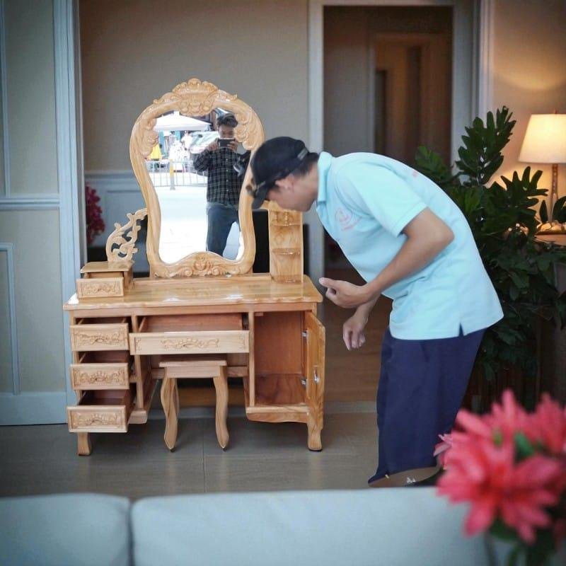 • Chi tiết chạm trổ tinh xảo: Các họa tiết chạm khắc trên bàn và gương thể hiện sự khéo léo của người thợ, biến chiếc bàn trang điểm không chỉ là vật dụng mà còn là điểm nhấn nghệ thuật độc đáo.