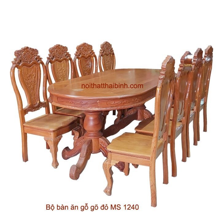 Quý khách xem bộ bàn ăn gỗ gõ đỏ đang có tại cửa hàng nội thất Thái Bình