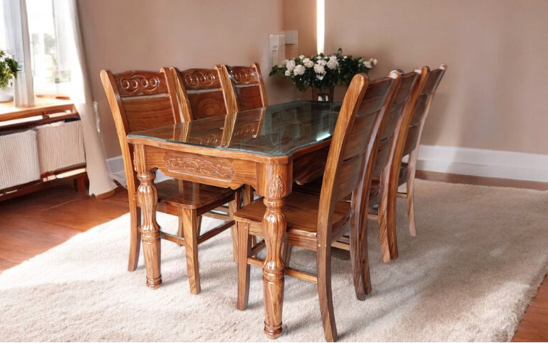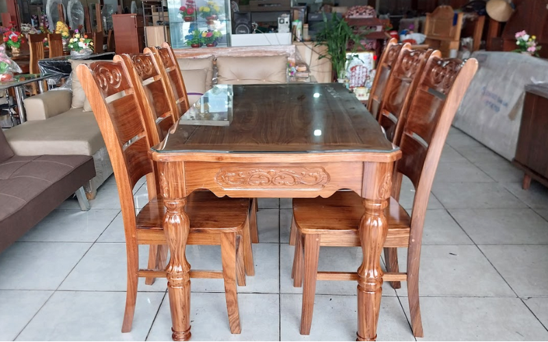 Kích thước: Bàn 1m6 (dài) x 0m8 (rộng) và 6 ghế gỗ chất lượng đi kèm.