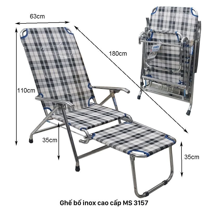 Với kích thước 63cm (rộng) x 1m8 (dài) x 35cm (cao), ghế bố inox đủ lớn cho người trưởng thành nằm thoải mái. Thiết kế thông minh giúp bạn có thể ngả ghế theo nhiều tư thế: nằm, ngồi, tựa lưng đọc sách hay xem TV đều rất tiện lợi.