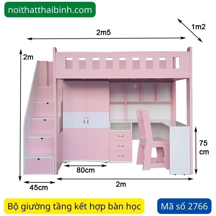- Giường tầng 1m4 x bàn học 1m2 x tủ áo 0m8