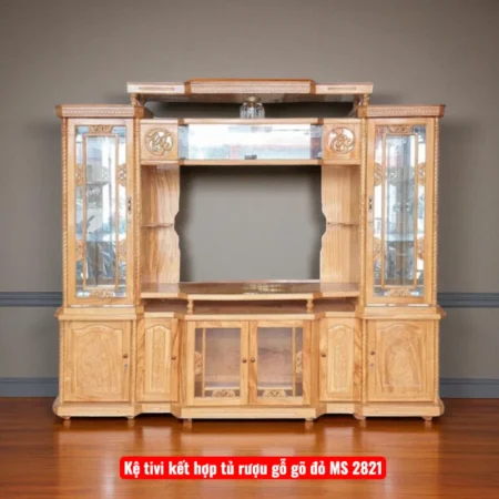 Kệ tivi kết hợp tủ rượu gỗ gõ đỏ MS 2821