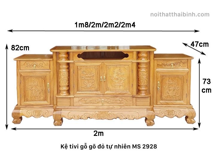 Kệ tivi gỗ gõ đỏ cao cấp được biết đến với chất lượng vượt trội và thiết kế tinh tế, là sự lựa chọn lý tưởng cho không gian sống hiện đại. Để đáp ứng nhu cầu của người tiêu dùng, sản phẩm này có nhiều kích thước phong phú như 1m8, 2m, 2m2 và 2m4. Những kích thước này được thiết kế linh hoạt, phù hợp với các không gian khác nhau từ phòng khách nhỏ gọn đến những không gian rộng lớn. Việc lựa chọn kích thước phù hợp không chỉ giúp tối ưu hóa không gian mà còn nâng cao tính thẩm mỹ cho nội thất của ngôi nhà bạn.