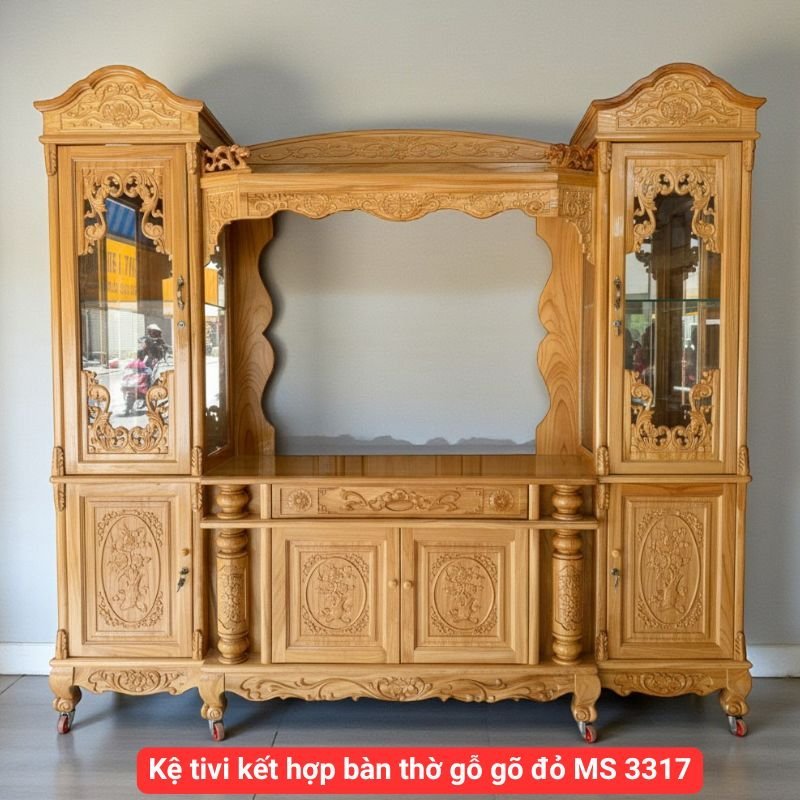 Kệ tivi kết hợp bàn thờ gỗ gõ đỏ tự nhiên