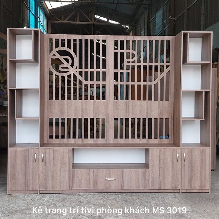 Mẫu ván melamine sản xuất kệ trang trí tivi phòng khách