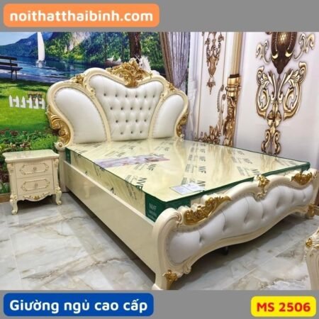Loại gỗ : Gỗ công nghiệp sơn men trắng – hoa văn dát vàng