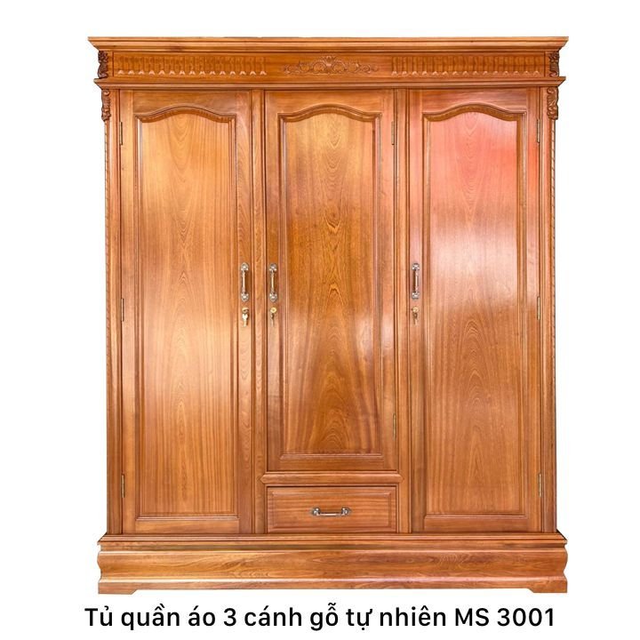 Tủ quần áo 3 cánh gỗ tự nhiên – Giải pháp lưu trữ bền đẹp cho gia đình Việt
