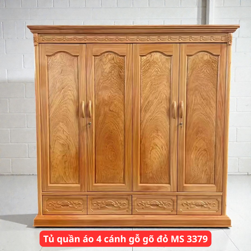 Tủ quần áo 4 cánh gỗ gõ đỏ MS 3379