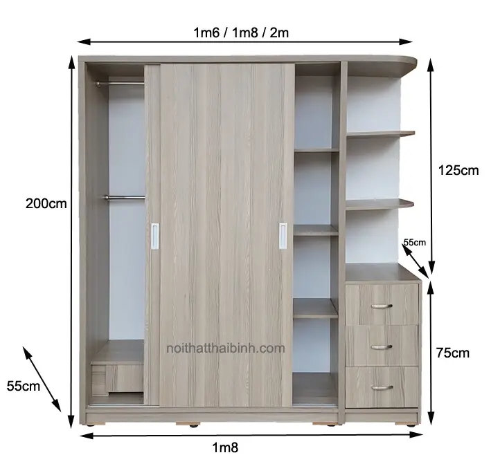 Tủ quần áo cánh lùa có ba kích thước phổ biến: