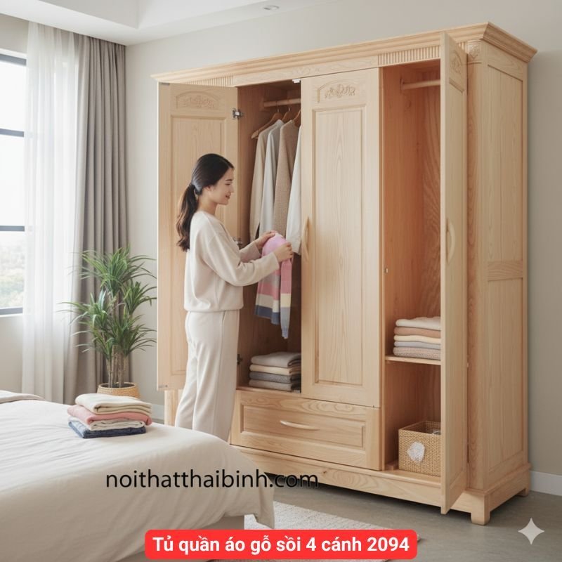 📞 Gọi ngay 0913 916 949 hoặc truy cập https://noithatthaibinh.com/ để đặt hàng Tủ quần áo gỗ sồi 4 cánh hôm nay!