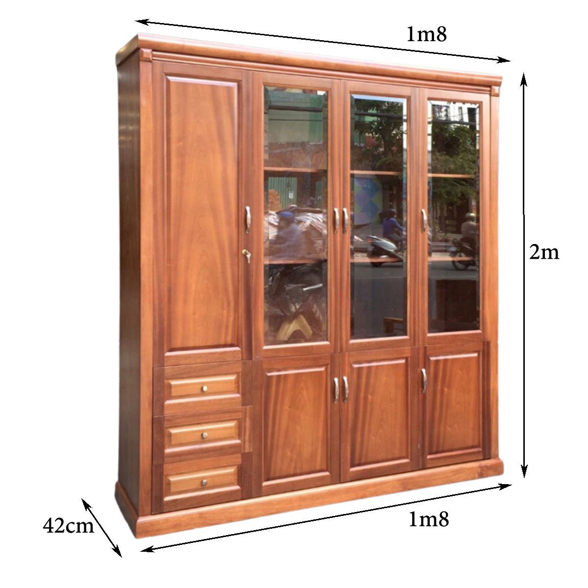 - Kích thước sản phẩm: Rộng 1.8m, cao 2m, sâu 42cm.