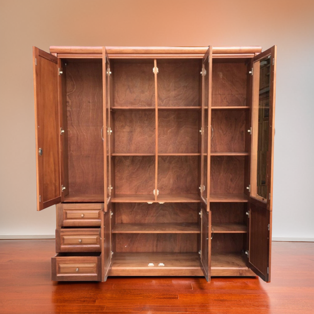 - Hạn chế tiếp xúc với ánh nắng trực tiếp: Ánh nắng mặt trời có thể làm phai màu và giảm độ bền của gỗ. Hãy sử dụng rèm che hoặc đặt tủ ở nơi không tiếp xúc trực tiếp với ánh sáng.